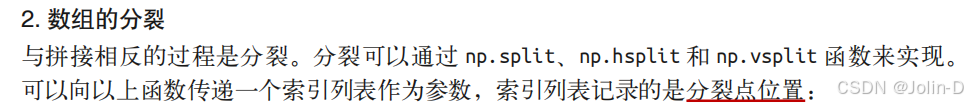 - np.split` 用来将数组分割为指定数量的子数组。