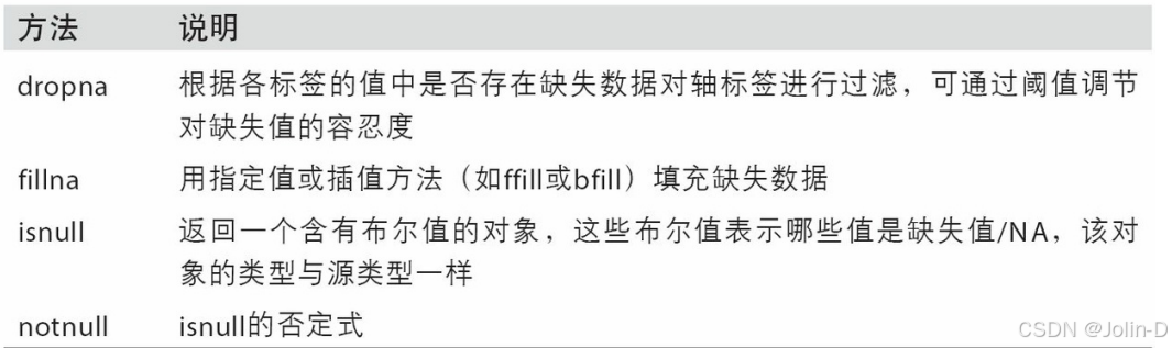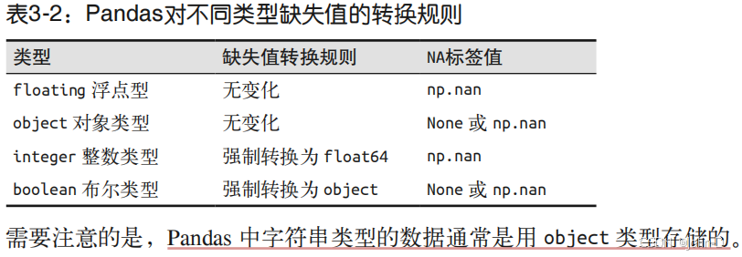 - None:Python对象类型的缺失值 Pandas 可以使用的第一种缺失值标签是 None,它是一个 Python 单体对象,经常在代码中 表示缺失值。由于 None 是一个 Python 对象,所以不能作为任何 NumPy / Pandas 数组类型 的缺失值,只能用于 'object' 数组类型(即由 Python 对象构成的数组)