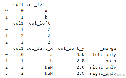 #indicator=True:这个参数会添加一个名为 _merge 的新列,显示每行是来自哪个 DataFrame。