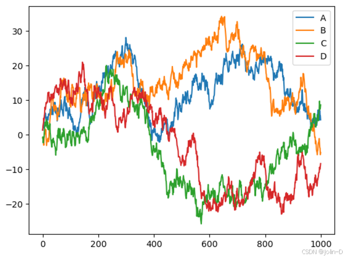 #data.cumsum():计算累积和(即当前值和前面所有值的和),每个点的值是前面所有随机值的和。