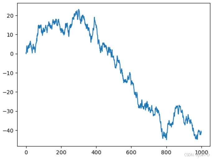 #图形的横轴表示数据的索引(从 0 到 999),纵轴表示随机数的累积和。
