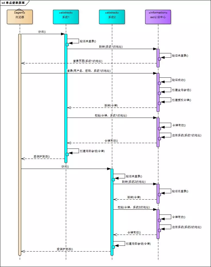 用户访问系统1的受保护资源,系统1发现用户未登录,跳转至sso认证中心,并将自己的地址作为参数
