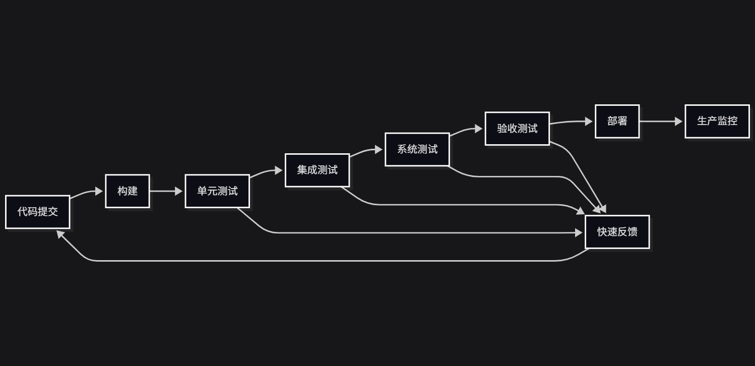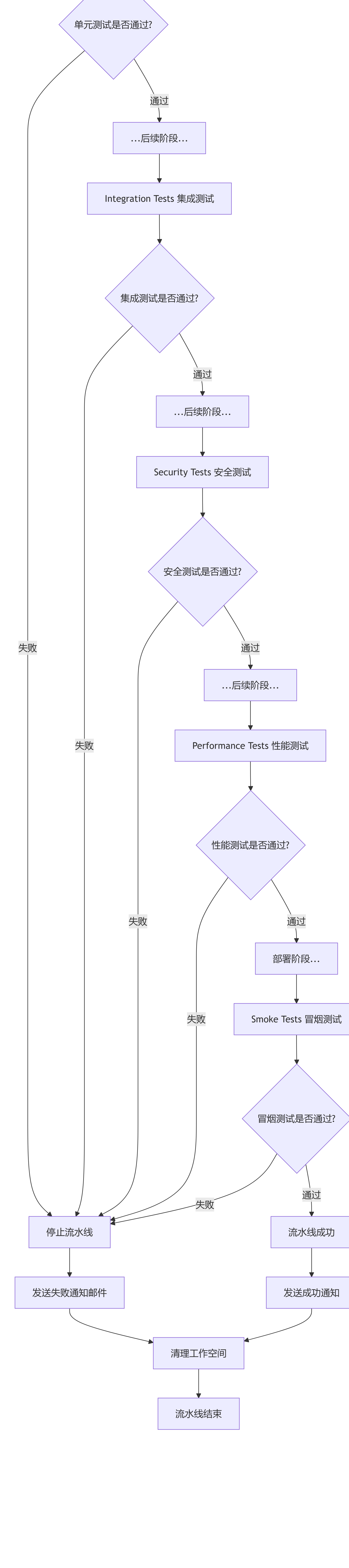 完整的CI/CD阶段:构建→测试→安全扫描→部署,支持多种测试类型:单元、集成、性能、冒烟测试,集成了主流安全扫描工具,支持蓝绿部署等高级部署策略。
