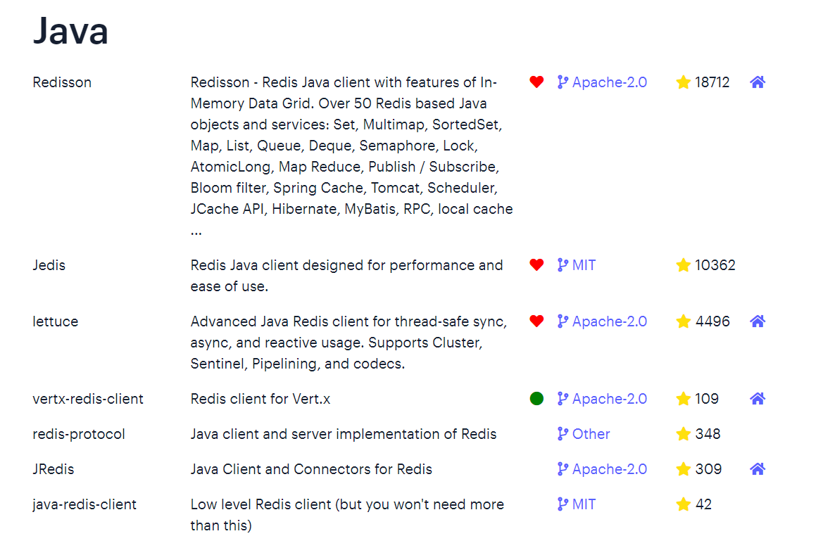在Redis官网中提供了各种语言的客户端,地址:https://redis.io/docs/clients/