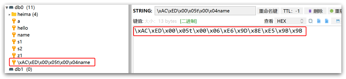 只不过写入前会把Object序列化为字节形式,默认是采用JDK序列化,得到的结果是这样的: