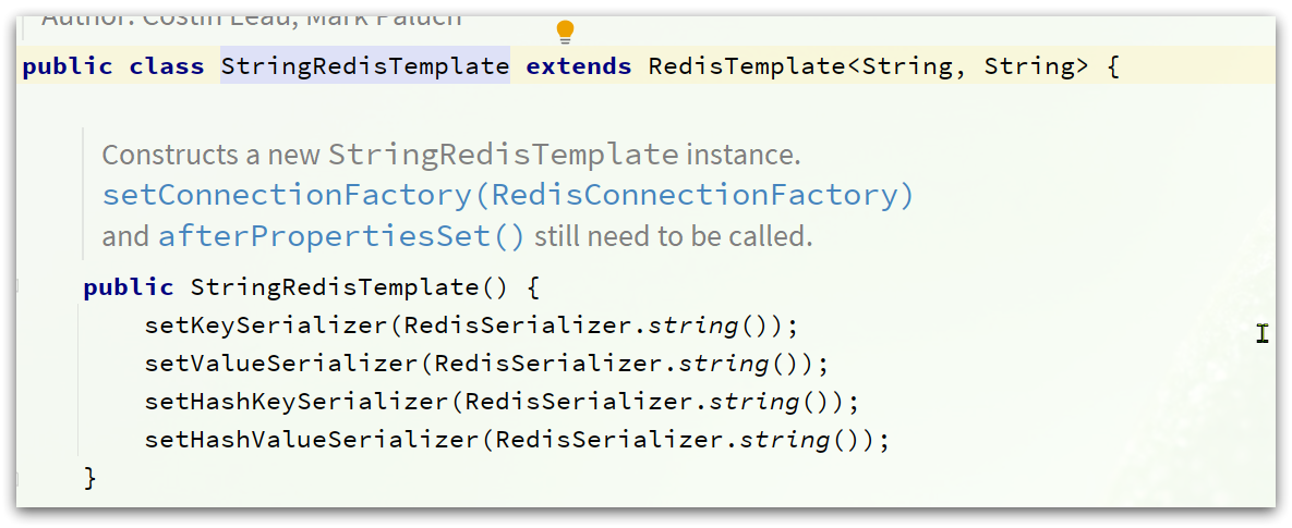 这种用法比较普遍,因此SpringDataRedis就提供了RedisTemplate的子类: StringRedisTemplate,它的key和value的序列化方式默认就是String方式。