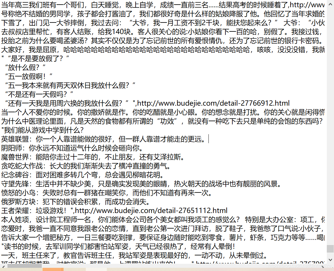 joke="\n".join(jokes).strip()#各项链接,返回字符串