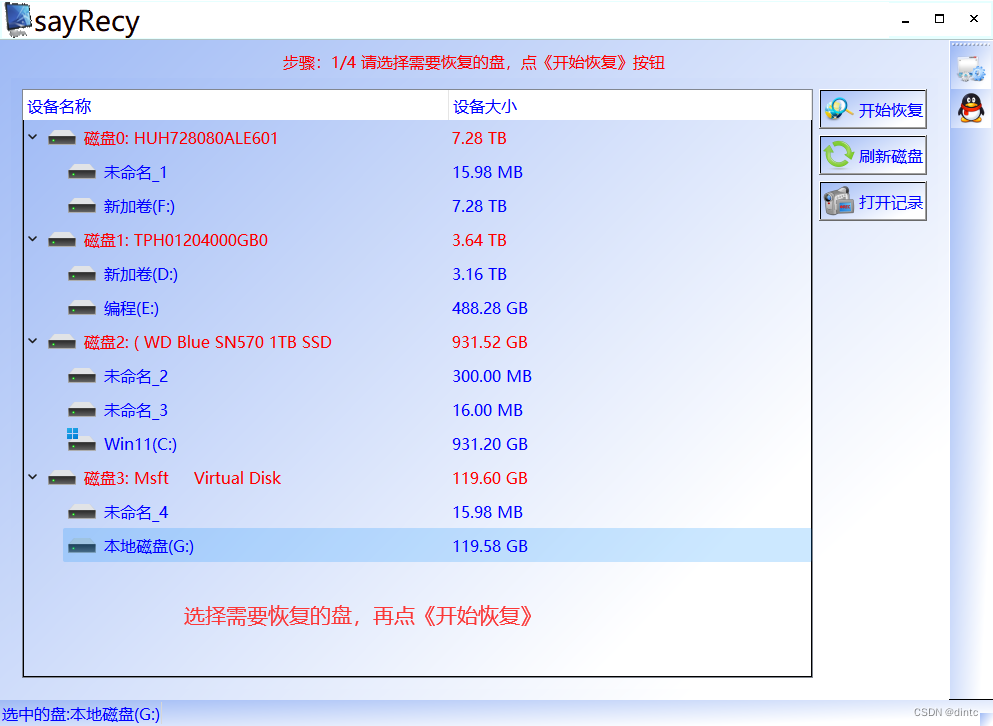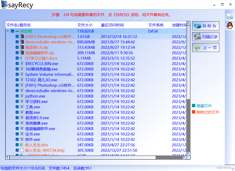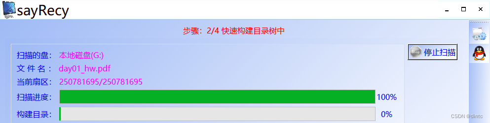 注意事项2:目录显示变应用程序找到出来的数据需要暂时保存到其它盘里。