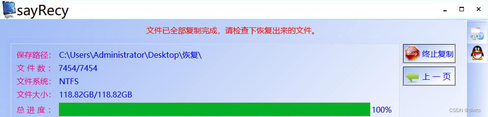步骤4:最后一步只需等待程序将数据复制完毕就可以了 (为了以防万一,最好检查下找到出来的数据是否正常)。