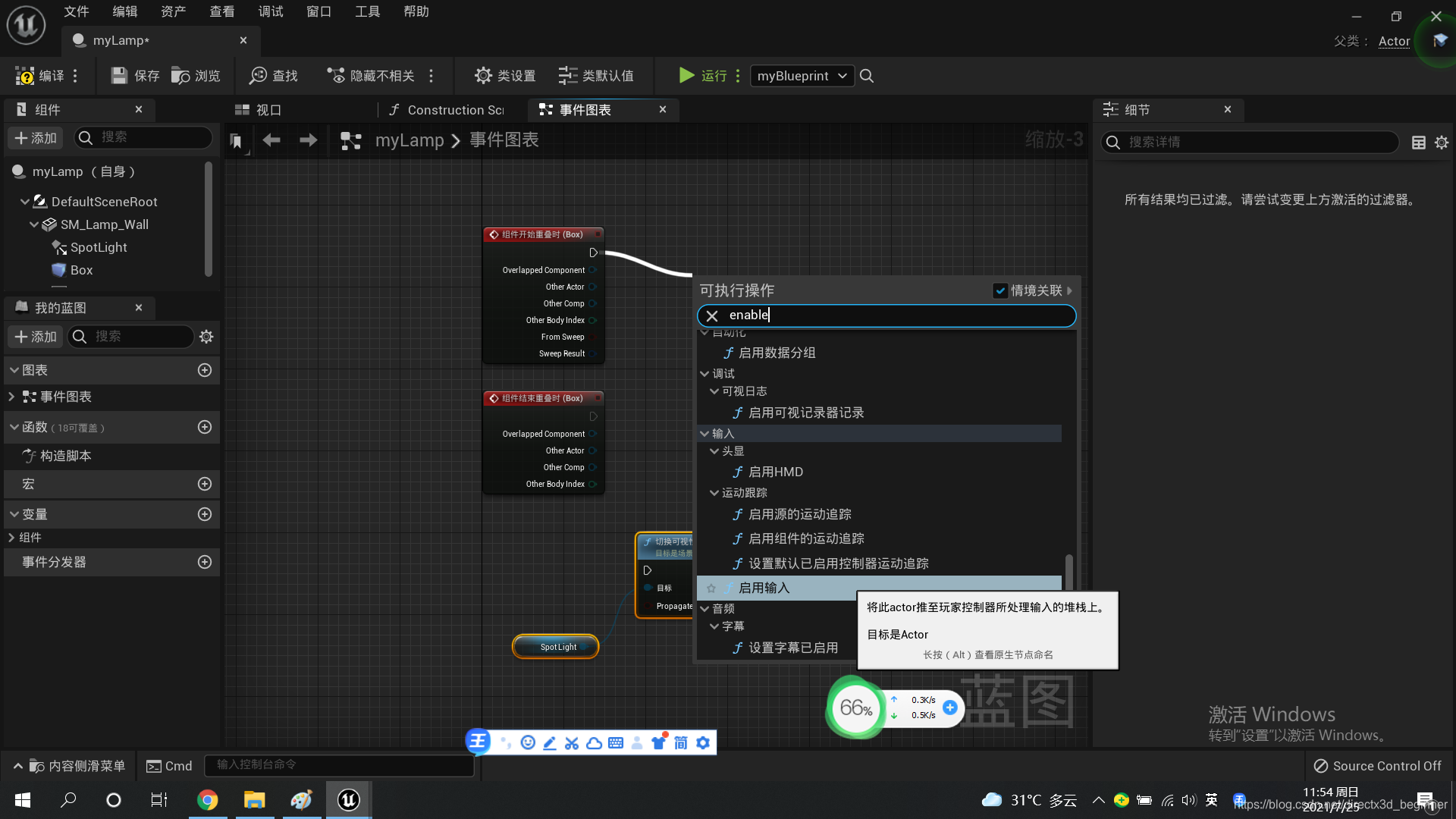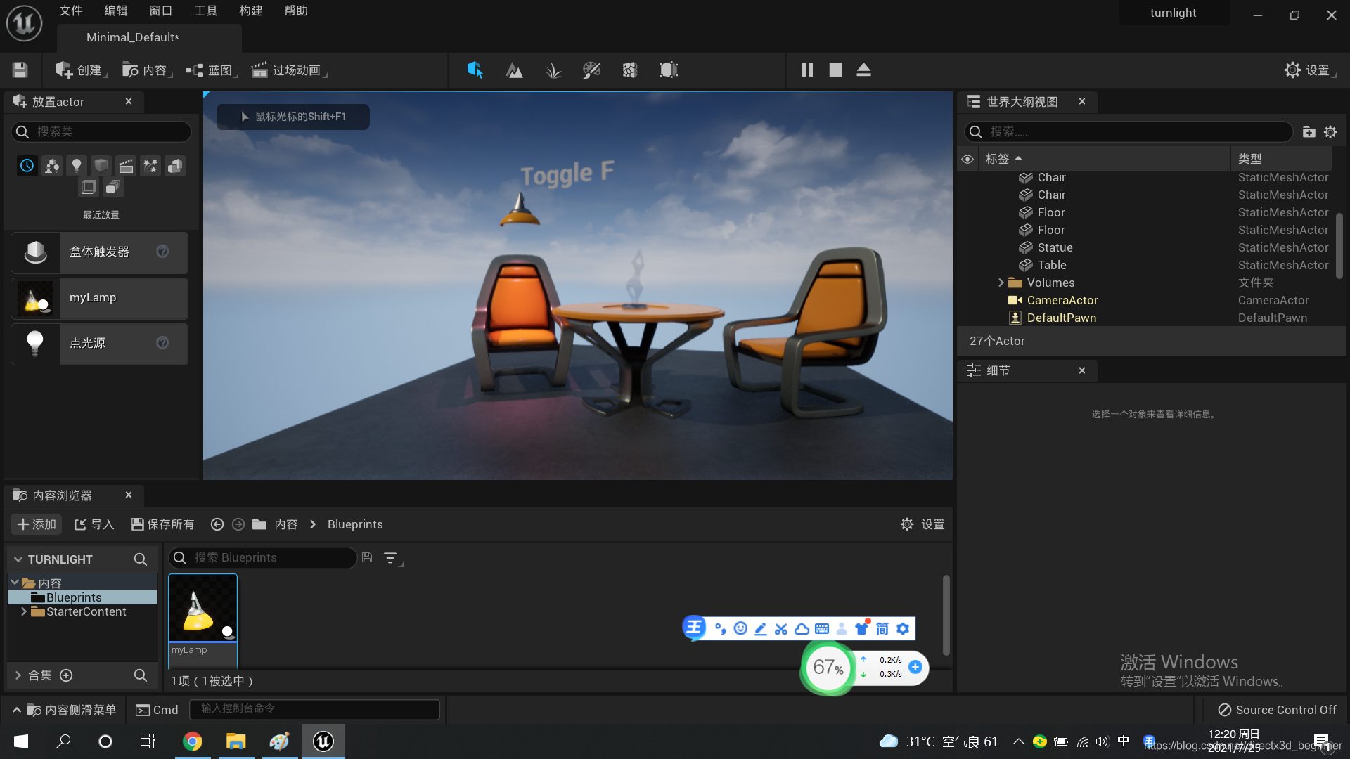 本文介绍如何在类蓝图中实现灯光切换及文本提示功能,包括通过距离判断控制灯光可见性及使用F键进行操作。
