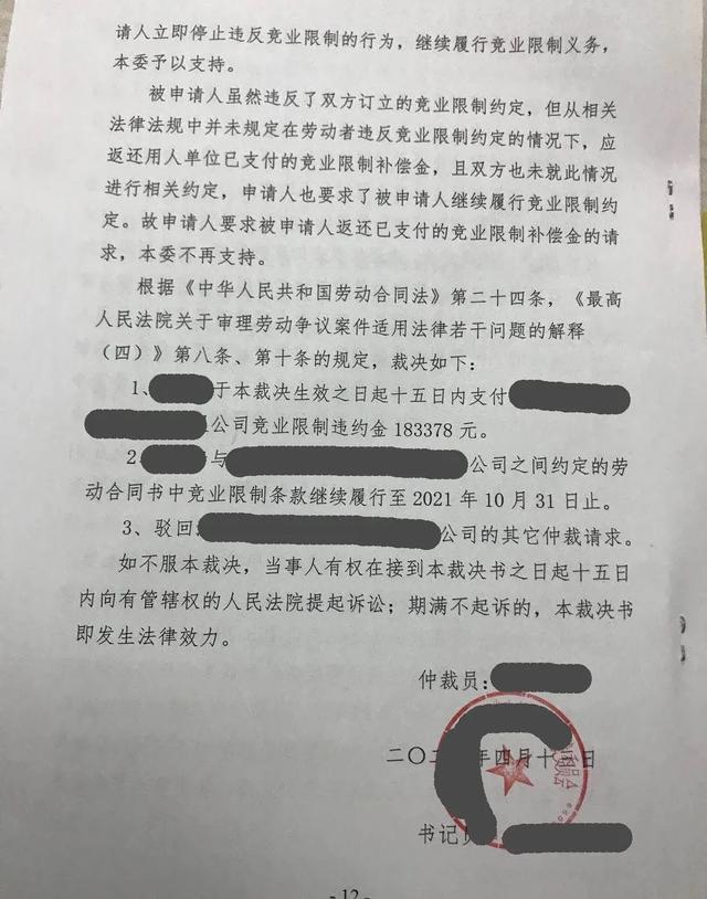 一名程序员从原公司离职之后入职了一家新公司,辞职2个月后收到原公司的2400元的竞业协议补偿款,收到这笔钱没几天,他又收到原公司的劳动仲裁,理由是该员工违反了竞业协议,并要求其赔偿公司损失35万元。最终劳动仲裁结果为原公司胜诉,该程序员赔偿公司183378元!