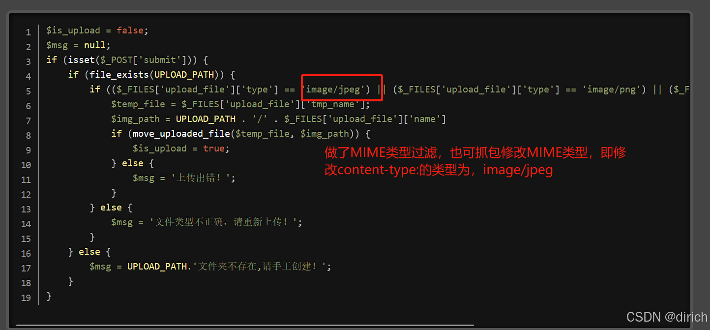 step1:首先上传了一个包含一句话木马的php文件,但是提示文件类型不正确,可以猜测这里是做了php文件的过滤,这里可以把木马文件后缀名修改成jpg文件,然后通过bp抓包,再将文件后缀修改为php尝试能否行得通。