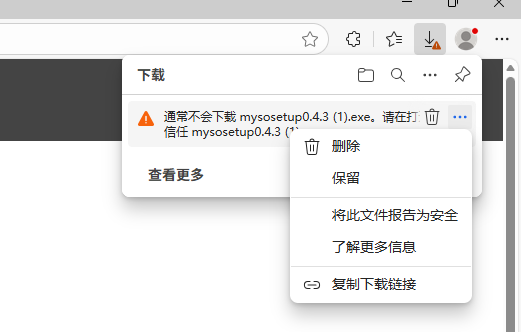 本输入法是工具的子功能,需要先装工具,再从工具中安装输入法到系统,工具可从https://www.myso123.com 官网下载,】需要注意的是下载完成后,如果浏览器报告警,选择保留,如下图所示,安装包已数字签名,可放心使用。