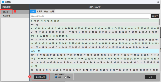 在“设置板面”的“输入法”窗口,点击“常用词”页签,切换到词库,如下图所示。