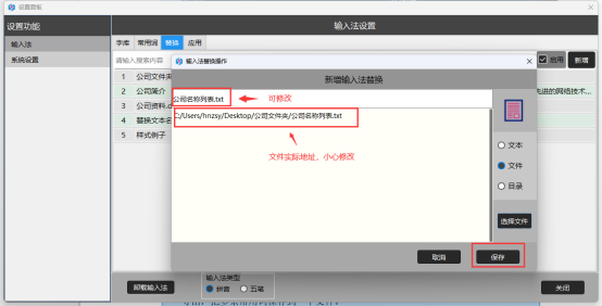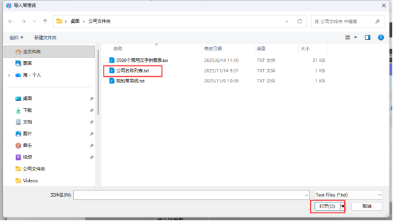 在日常工作中,会有一些高频使用,但不是热门词的常用词,比如客户名单,服务的公司名称列表,班级学生名单。这些常用词我们可以整理到文本文件(txt),文件字符格式是UTF8格式,然后导入到输入法中。
