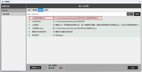 比如我们是客服,高频输入下列公司名称,那么我们可以把这些保存到《公司名称列表txt》文件中,文件编码是UTF-8。