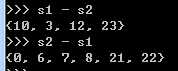 3.2 差集:在s1中,不在s2中的部分,有两种方式
