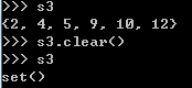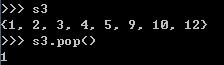 s.pop() #随机删除一个元素,若无则报错,返回删除的元素