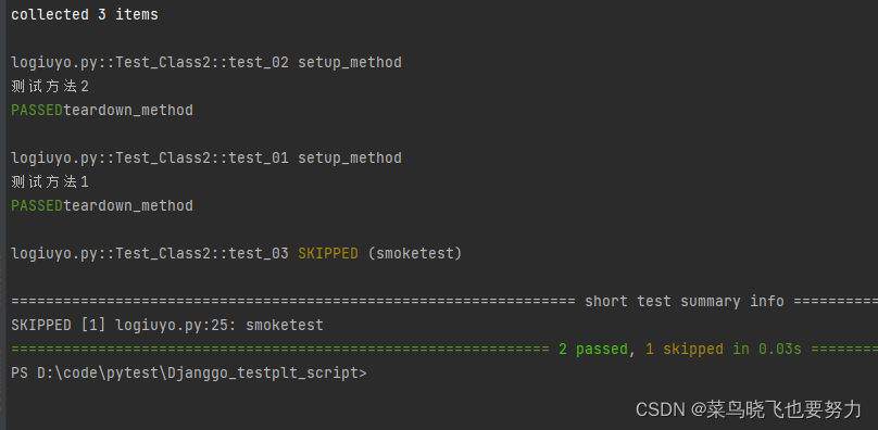 Terminal命令执行时:pytest logiuyo.py -rs -s -v 注释:-rs表示显示详细信息 -s表示显示print信息 -v表示显示详细信息