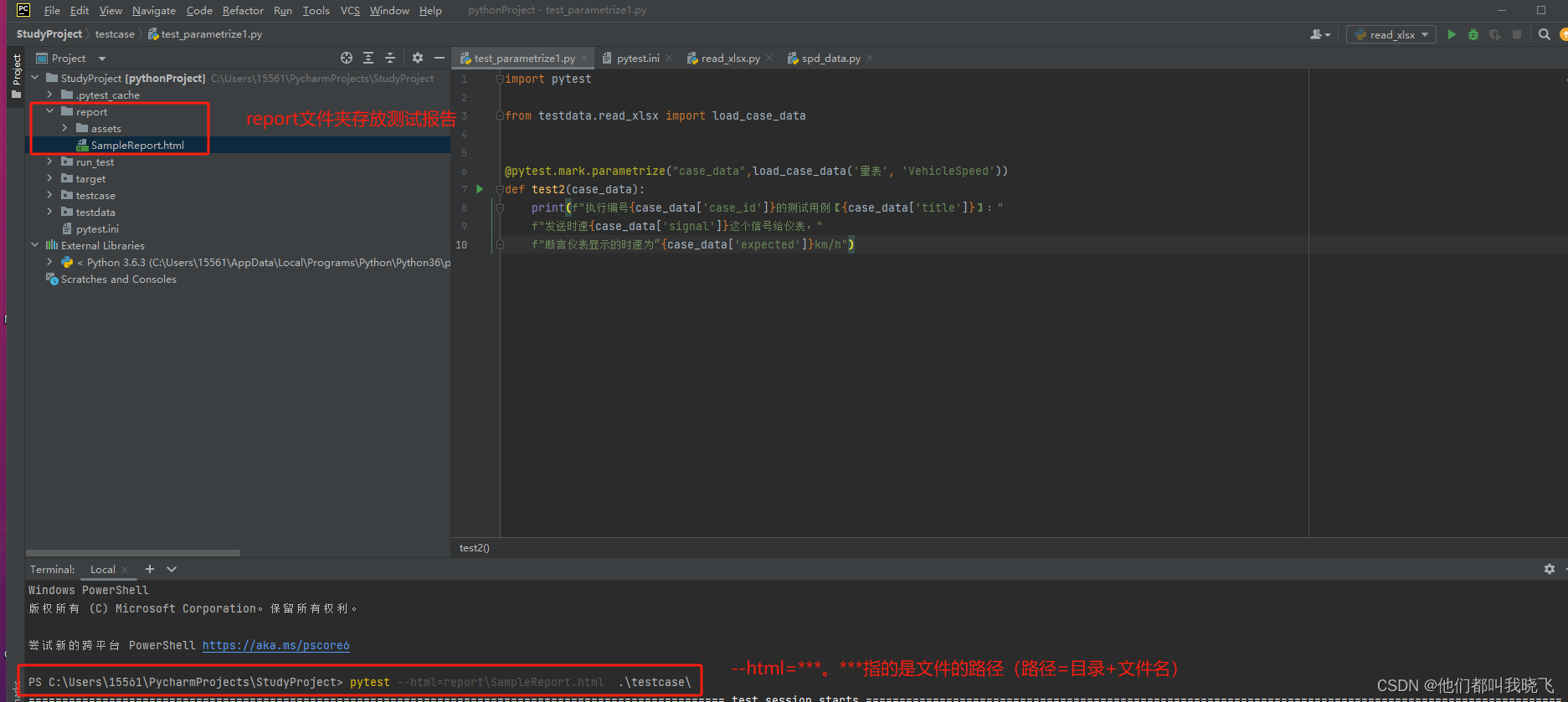 2.1使用pytest命令执行时,使用html=***表明此次执行测试用例后要生成的HTML的测试报告路径(路径包括目录+文件名)。
