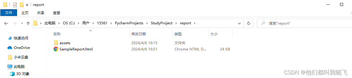 可以看到生成的文件包含SampleReport.html和assets样式表文件。只有这2个文件在同一个文件夹下,样式表才会生效,让页面美观。