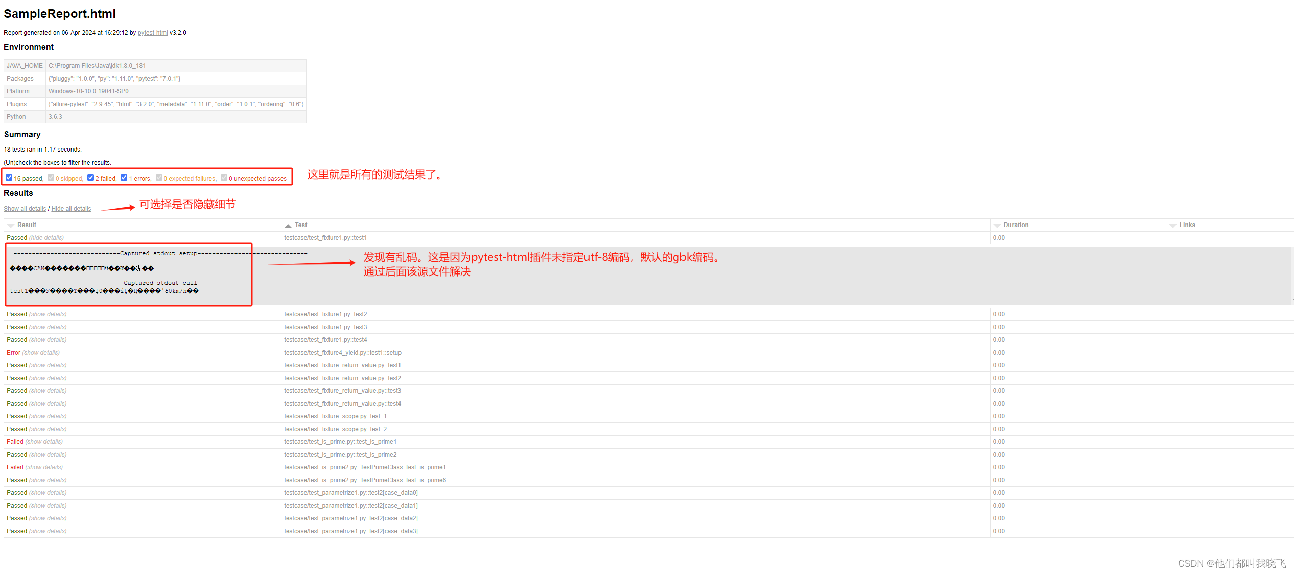 2.1.基本使用方式pytest --html=***,***代表文件路径,执行命令后,就会在指定路径下生成html测试报告文件;以及如何解决中文乱码问题