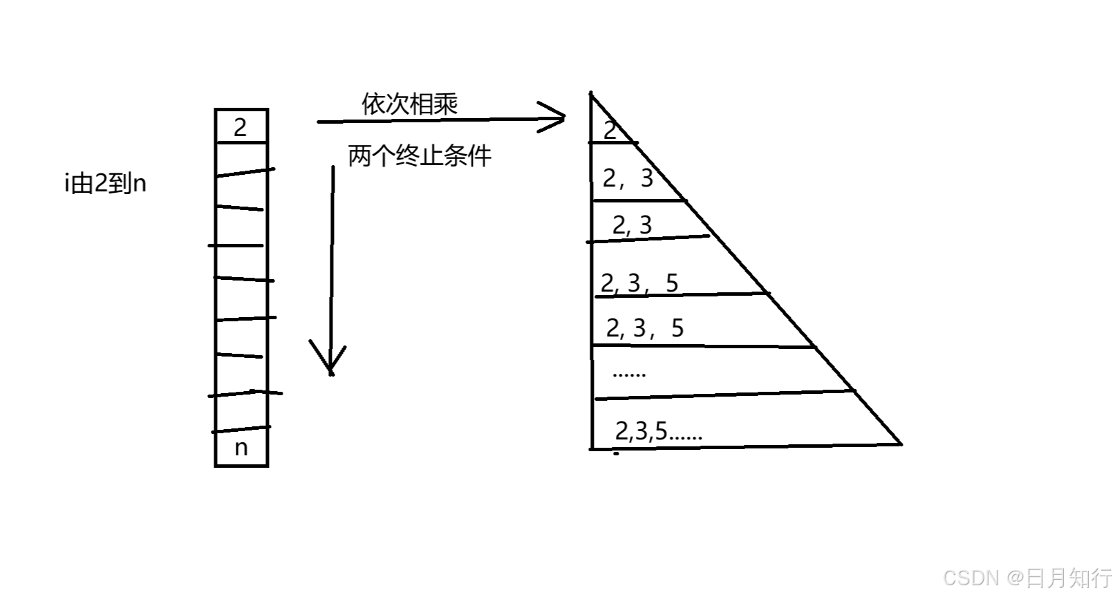 | 当前i | 素数列表(primes) | 标记操作 | 终止条件 |