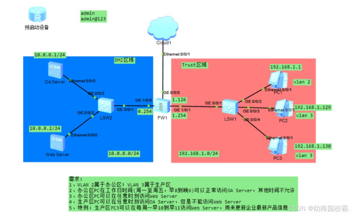 5.特例:生产区pc可以在每周一早上十点到早上十一点访问webserver 用在更新企业最新产品信息