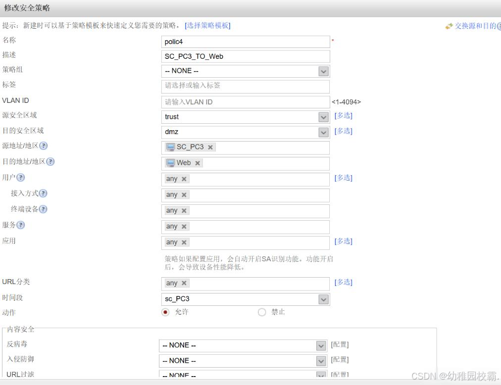 生产区PC3可以每周一早上10到早11访问Web Server,用来更新企业最新产品信息