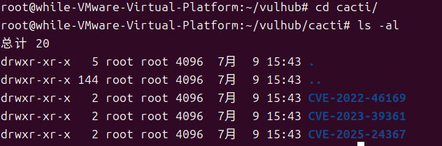 拉取完成之后,可以在/vulhub/cacti目录下查看
