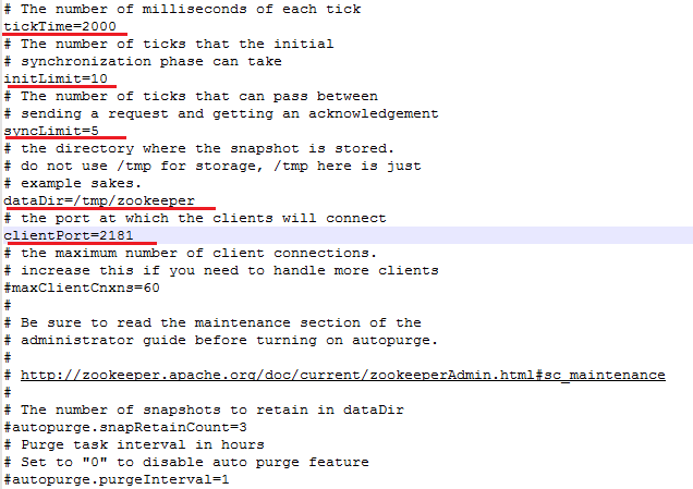 - tickTime: zookeeper中使用的基本时间单位, 毫秒值.