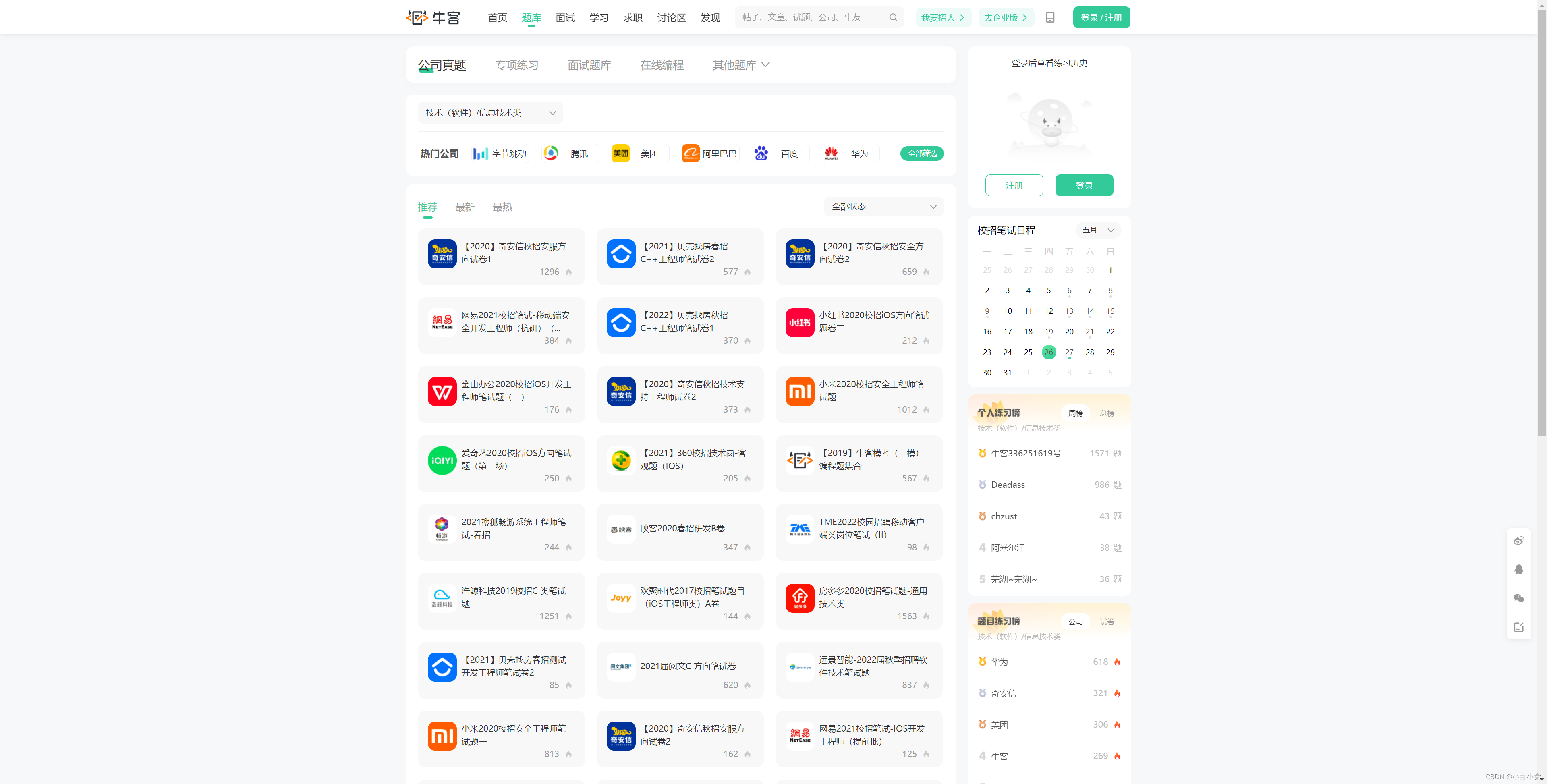应届生求职题库,校园招聘实习笔试面试真题。可选大厂面试题