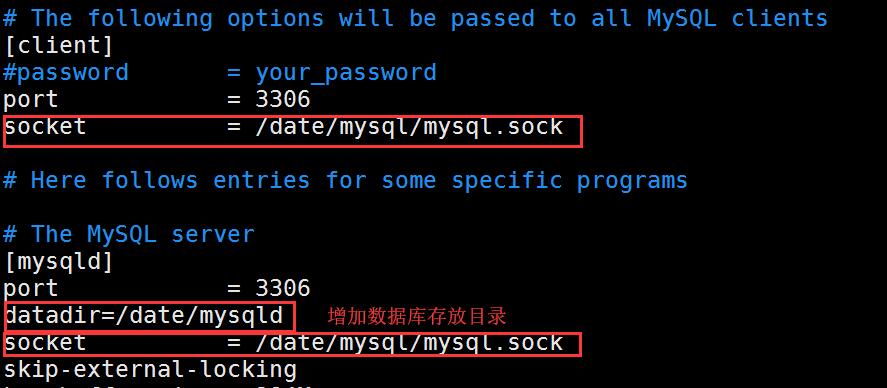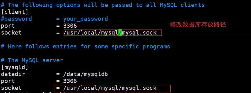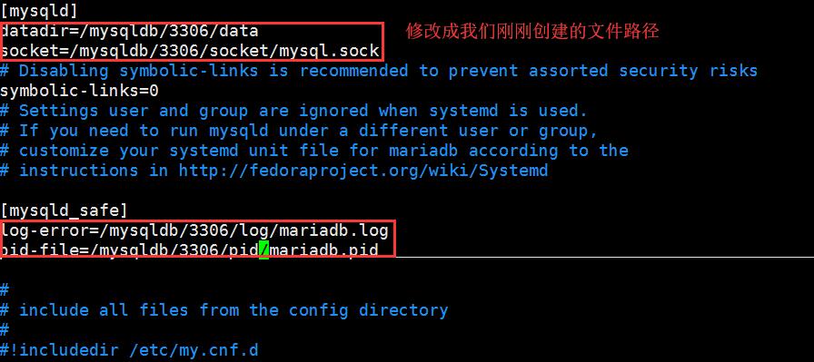 [root@centos7 ~]#vim /mysqldb/3306/etc/my.cnf # 修改配置文件