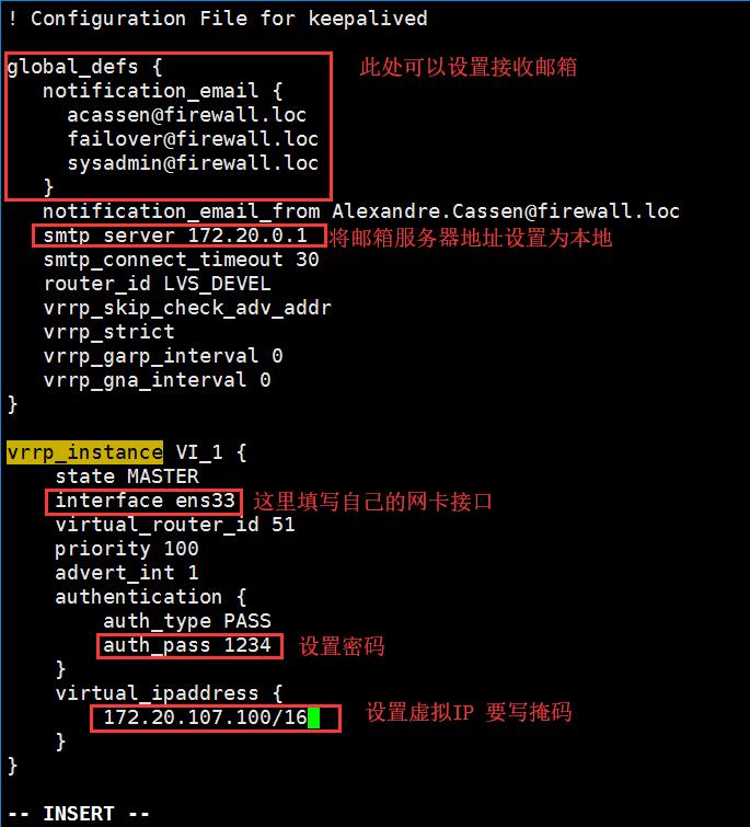 vim /etc/keepalived/keepalived.conf (修改配置文件)