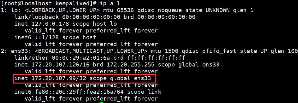 state MASTER #优先级最高的为MASTER,其他级别为BACKUP