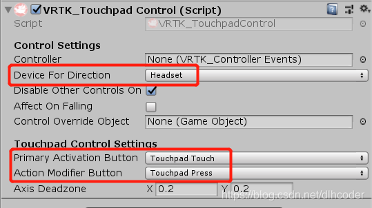 Disable Other Controllers On Active:如果勾选,将其他监听TouchPad事件的函数都禁用掉