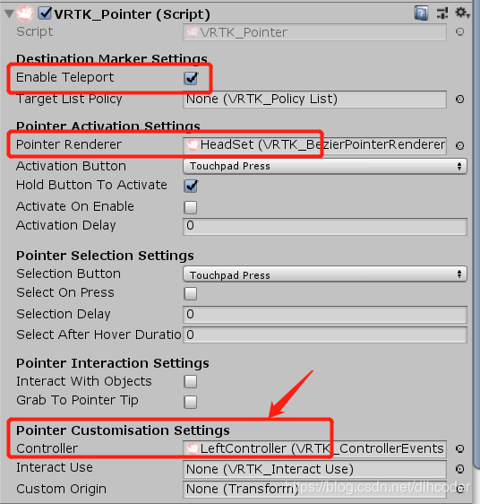 Pointer 要自定义手柄控制器,也就是使用哪个手柄触发头盔瞬移