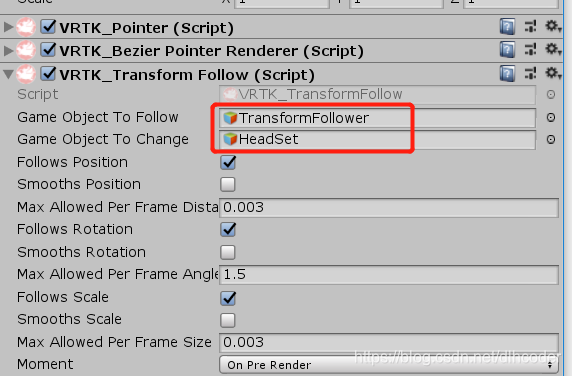 VRTK_Transform Follow :头盔决定瞬移目标点