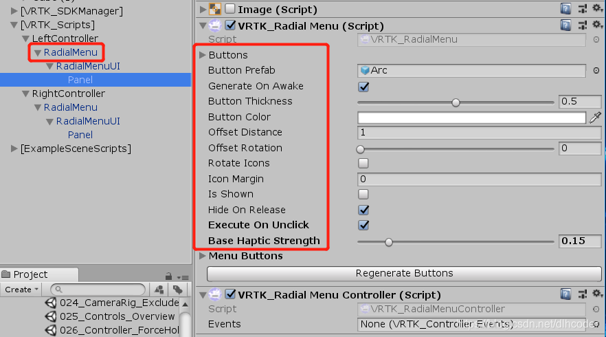 2、RadialMenu 预制体,VRTK_Radial Menu 菜单设置脚本 和 VRTK_Radial Menu Controller 菜单控制脚本