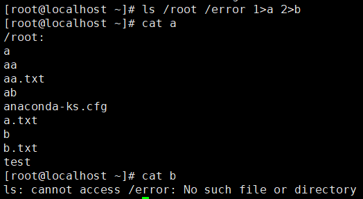 语法3:cat /root/aa < a.txt >b.txt :将文件passwd输入重定向到 a.txt,输出重定向到 b.txt 文件