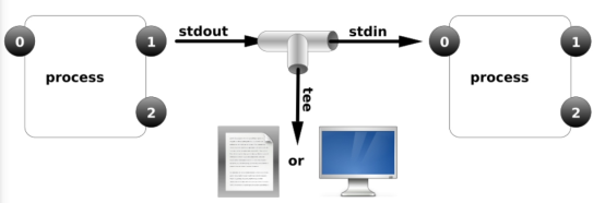 功能:tee 指令会从标准输入设备读取数据,将其内容输出到标准输出设备,同时保存成文件或显示。