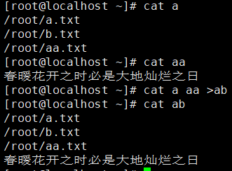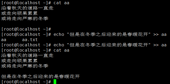 命令:echo "但是在冬季之后迎来的是春暖花开" >> aa