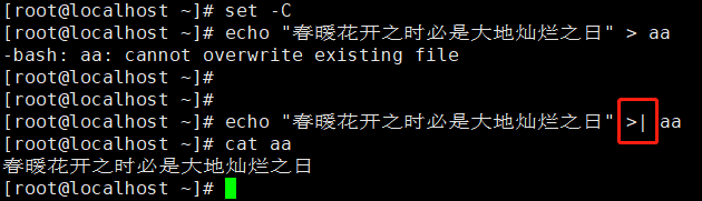 禁止覆盖命令:set -C ,解除禁制覆盖命令:set +C