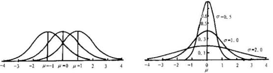 在研究正态分布时,我们认为每个样本都是等权的,因此μ是随机变量的均值,控制了曲线的位置,σ2控制了曲线的陡峭程度:
