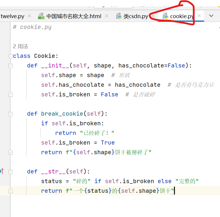 a.is_broken = False #调用类的方法 饼干被掰碎是False