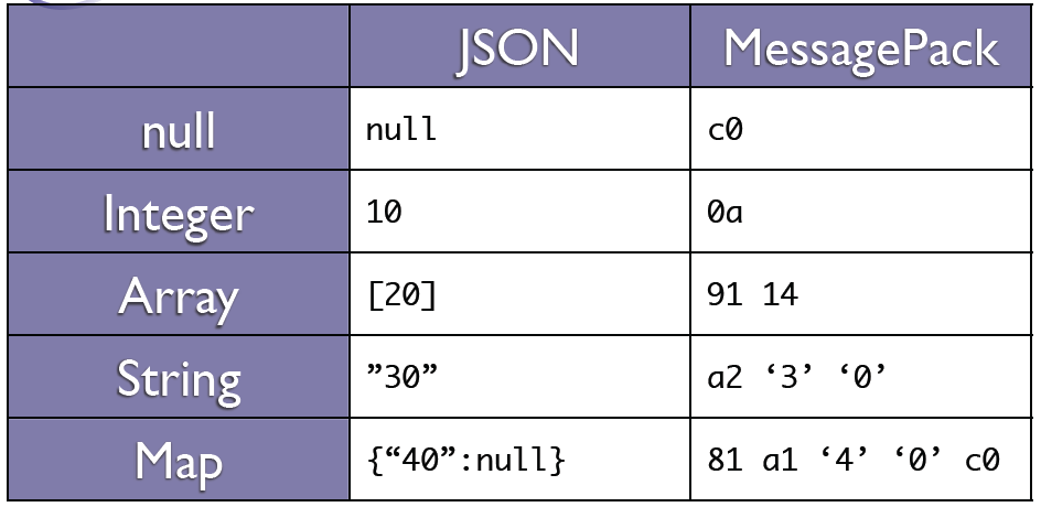 MessagePack是一个二进制序列化格式,因而它序列化的结果可以在多个语言间进行数据的交换。