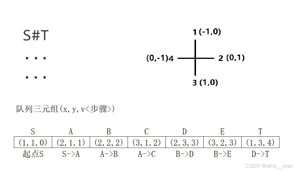 接下来n行,每行一个长为 m 的字符串,表示整个迷宫的布局。字符‘.’表示空地,‘#’表示墙,‘S’表示起点,‘T’表示出口。