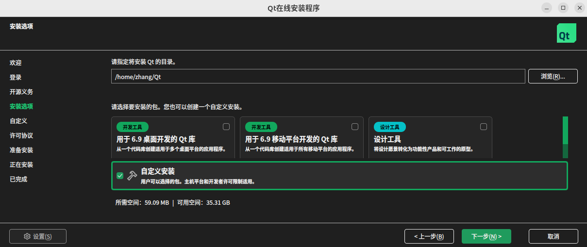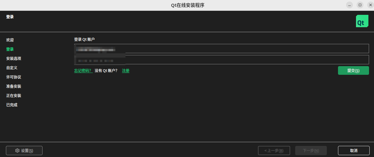 执行 Qt 在线安装程序,启动安装向导:sudo ./qt-online-installer-linux-x64-4.9.0.run