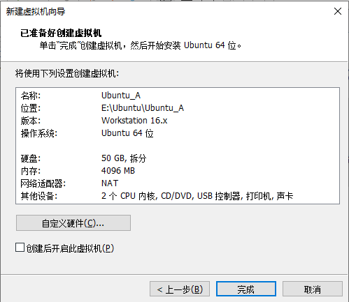 点击【完成】,完成创建Ubuntu系统过程。
