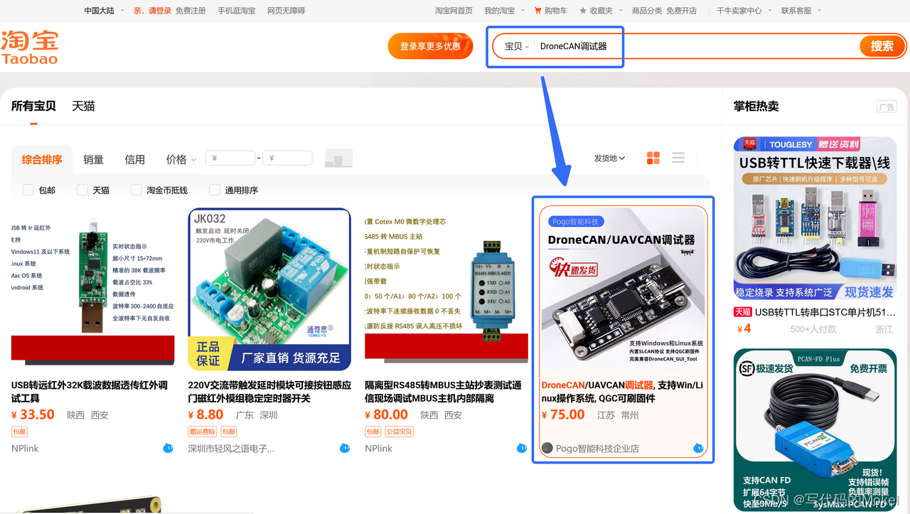 和上期在Windows下安装和使用dronecan_gui_tool的视频一样,我们将使用两个Pogo-DroneCAN调试器互连来演示测试dronecan_gui_tool的使用,你可以在淘宝搜索“DroneCAN调试器”找到这个商品,也可以通过评论区置顶链接(https://item.taobao.com/item.htm?spm=a21n57.1.0.0.2b9a523cYE9t78&id=734695507467&ns=1&abbucket=15#detail)直接跳转商品,调试器默认为slcan固件,同时支持使用QGC更新固件,我将在后续视频里分享利用QGC更新固件的过程,并介绍官方提供的几个可用固件。